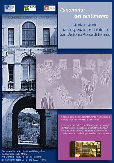 In tale occasione sarà proposta anche la visione del documentario "La città negata", realizzato dalla UNITE in collaborazione con la Soprintendenza Archivistica, che ci accompagnerà in un viaggio all'interno dell'ex ospedale psichiatrico Sant'Antonio Abate di Teramo.